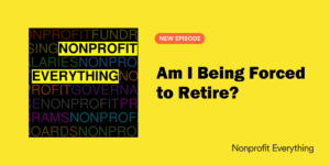 I think I’m being forced to retire. Everybody keeps talking about succession planning, but this nonprofit is my baby! Stacey and Andy can definitely help. Also this week, we talk about how to keep your head above water when there is *a lot* going on and all of it is important. Thanks for joining us this week, and don’t forget to send all of your nonprofit related questions to Questions@NonprofitEverything.com.